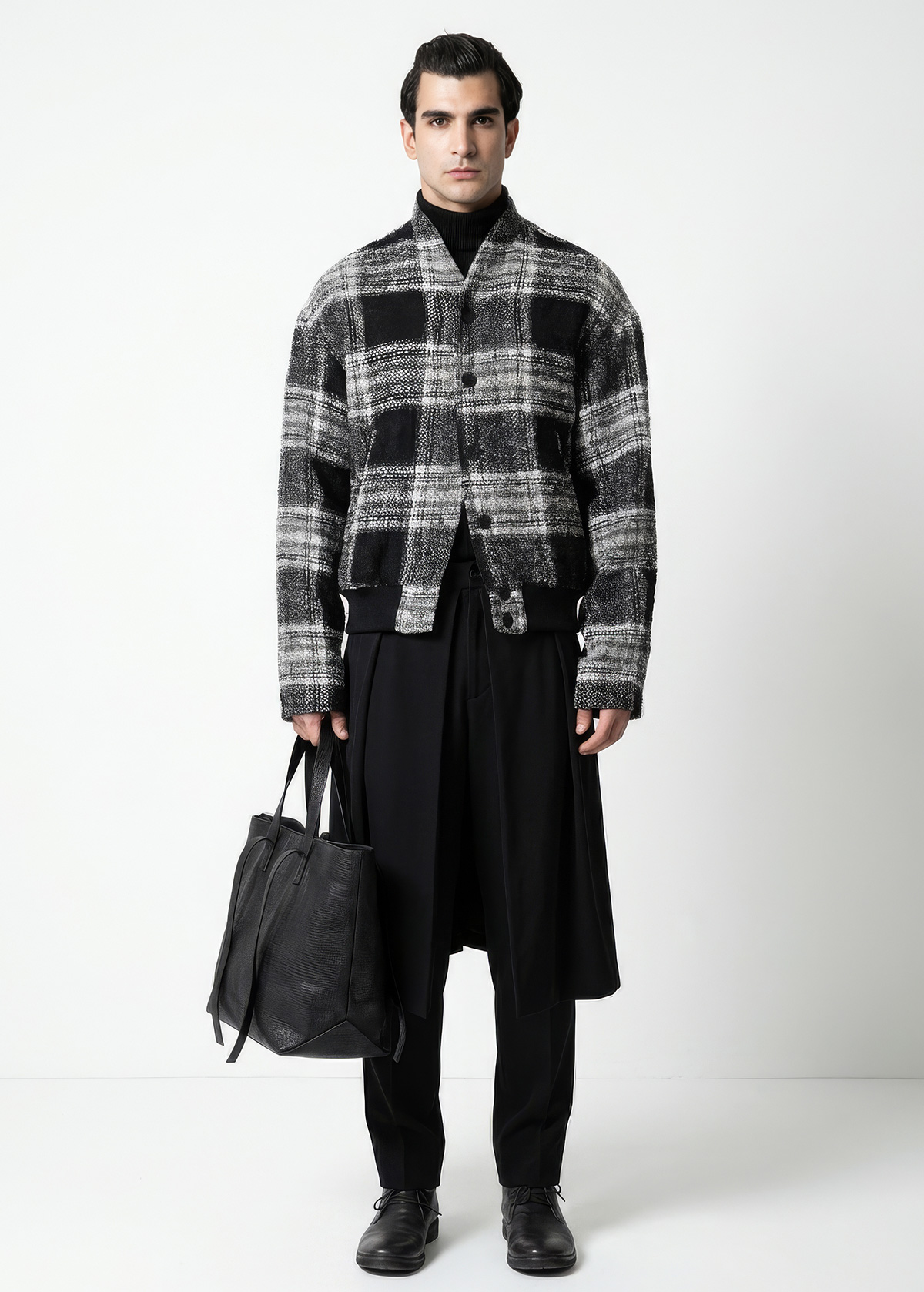 This cross-body jacket, crafted from gabardine, offers a modern twist on the classic design. Without a fly and fastened with a sleek zipper, it seamlessly blends style and functionality. Its versatility makes it perfect for day-to-night wear, easily paired with various outfits for a chic, effortless look. Hand made in Greece.