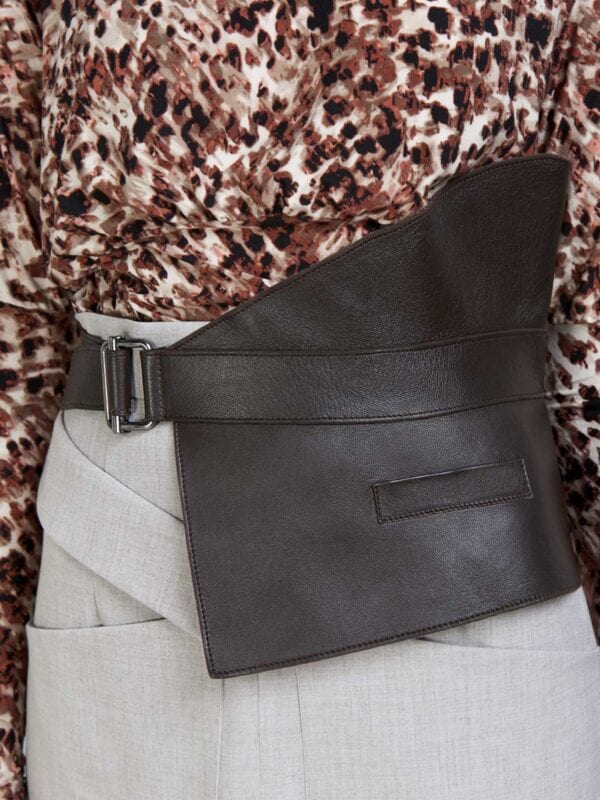 BROWN LEATHER BELT WITH HOOPS